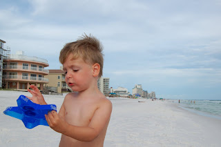 Building more sand castles. I don't have any photos of the sand castles because Nathan likes to "crunch" them quickly.